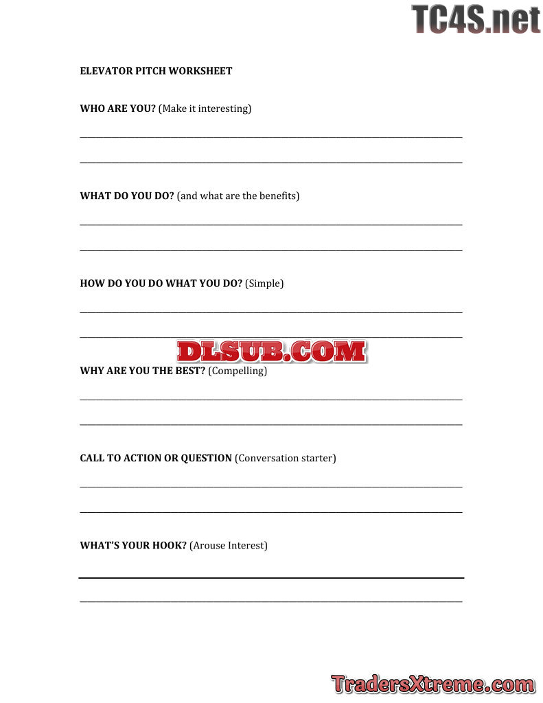 Elevator Pitch Worksheet - JPG Image File