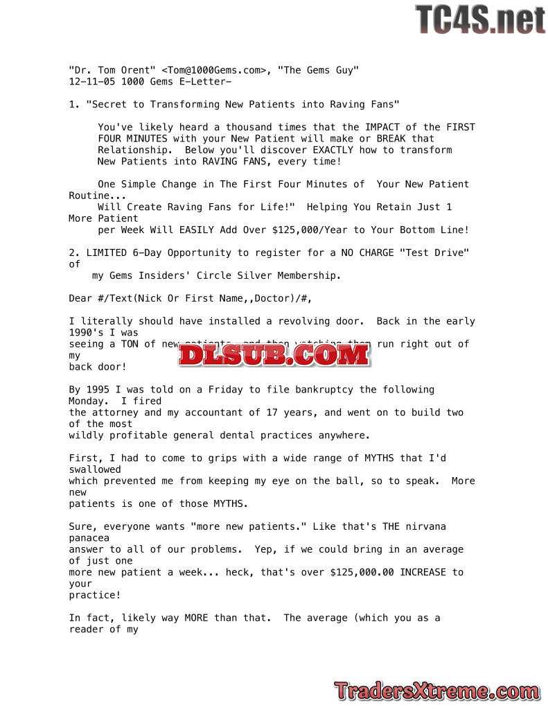 G2005 065 Emb 92 2005 12 11 Secret To Transforming New Patients Into Raving Fans - JPG Image File