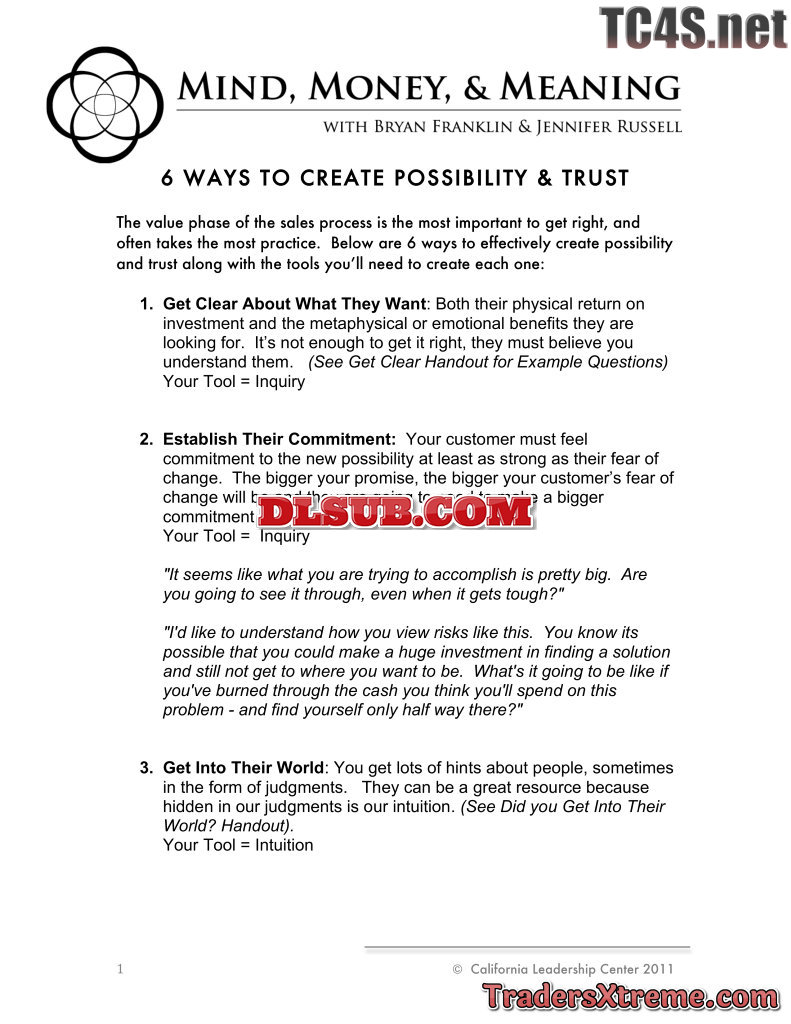 Bryan Franklin Sales Process 11 6 Ways To Create Possibility And Trust Worksheet - JPG Image File