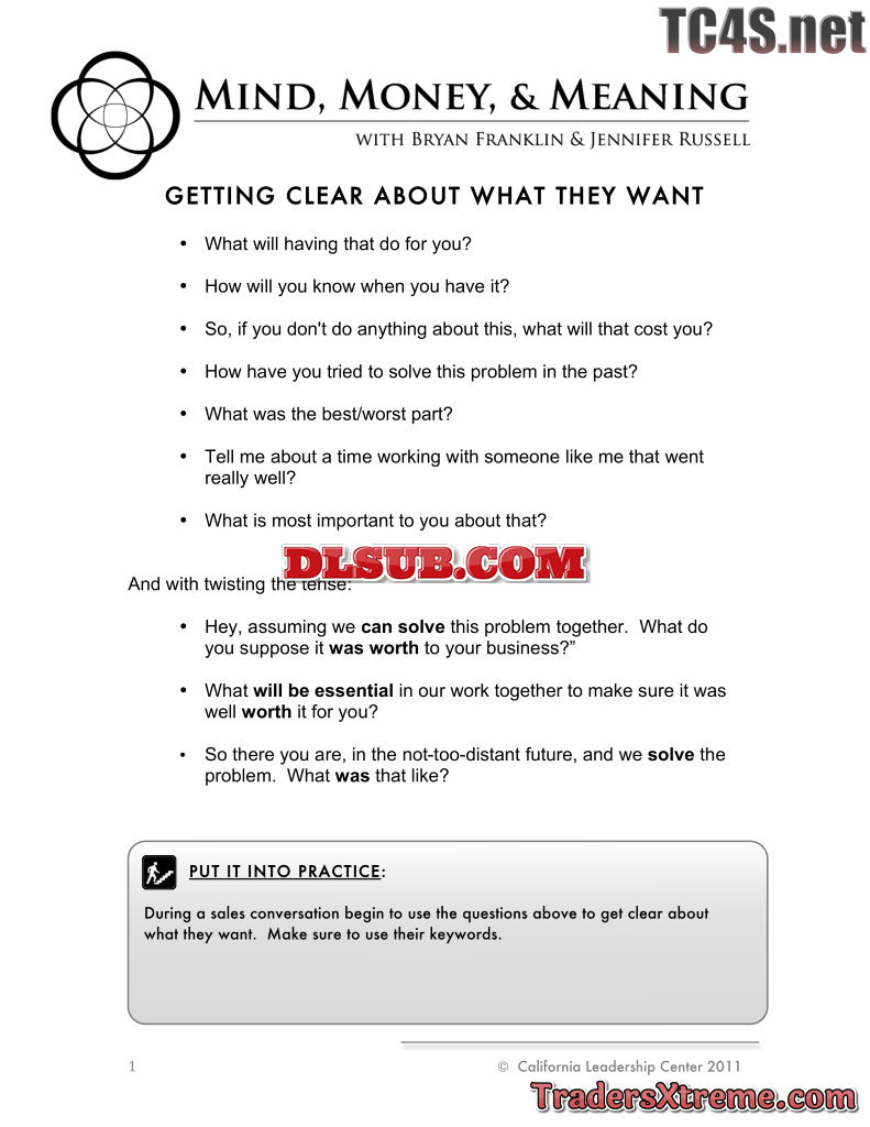 Bryan Franklin Sales Process 12 Getting Clear About What They Want Worksheet - JPG Image File