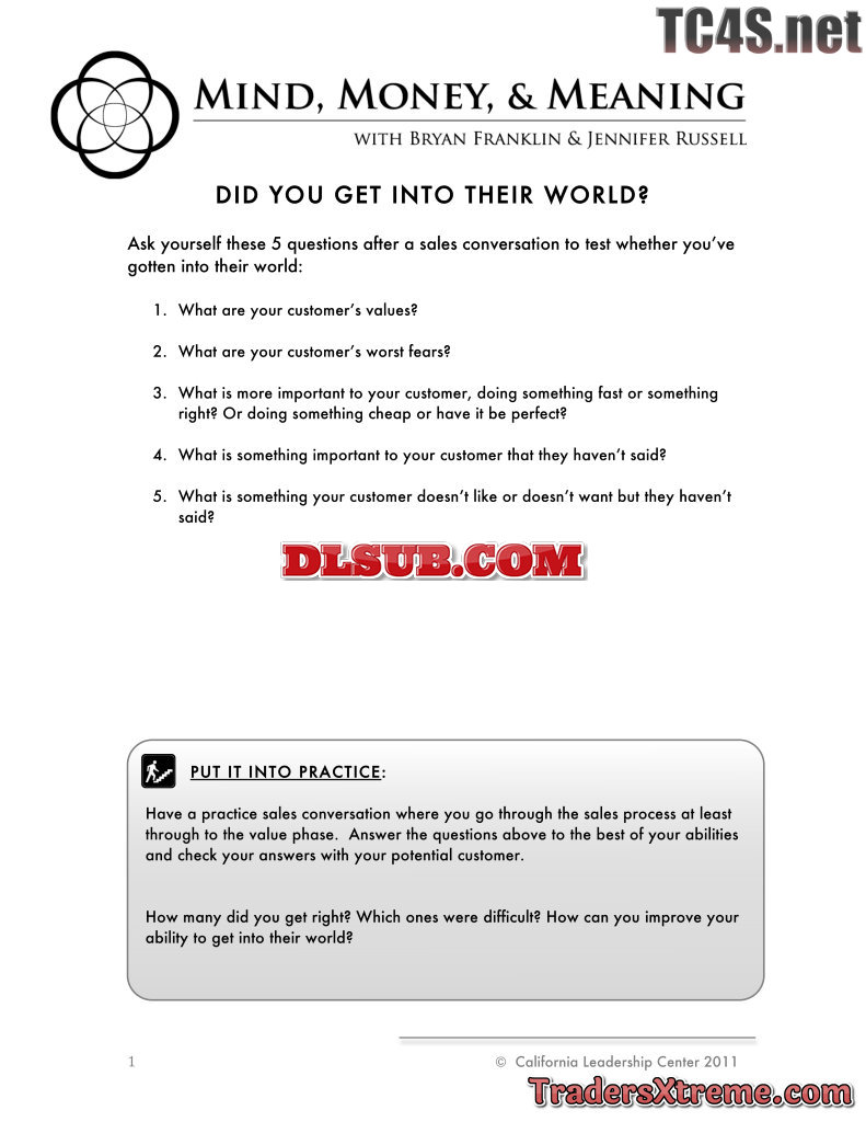 Bryan Franklin Sales Process 13 Did You Get Into Their World Worksheet - JPG Image File