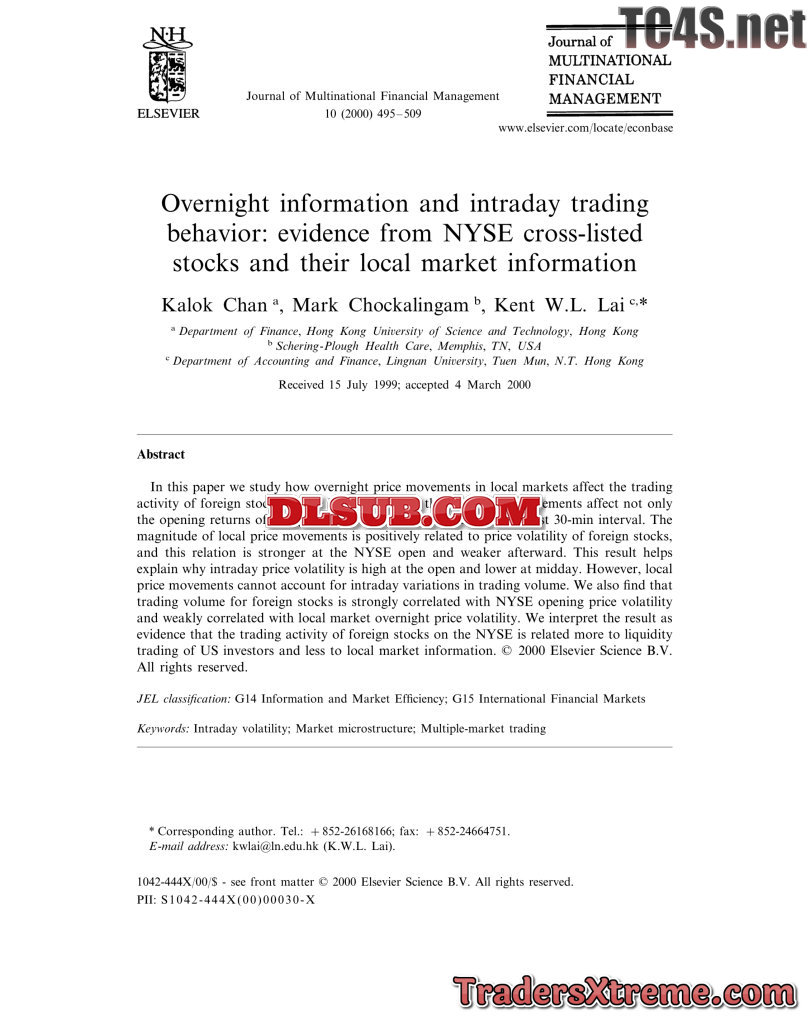 Chan Chockalingam And Lai Overnight Information And Intraday Trading Behavior Evidence From Nyse Cross - JPG Image File