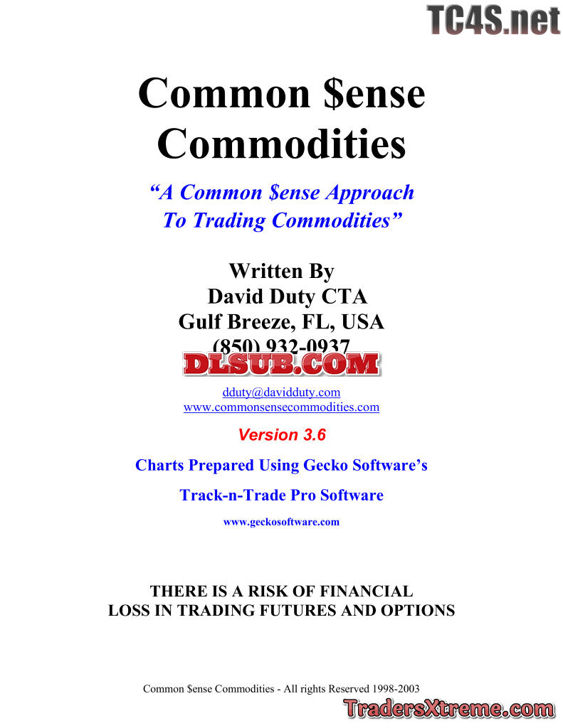 Common Sense Commodities A Common Sense Approach To Trading Commodities - JPG Image File