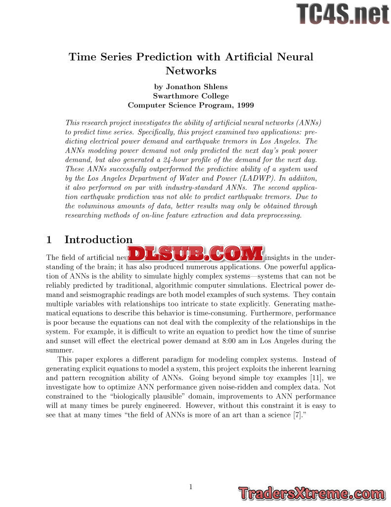 J Shlens Time Series Prediction With Artificial Neural Networks