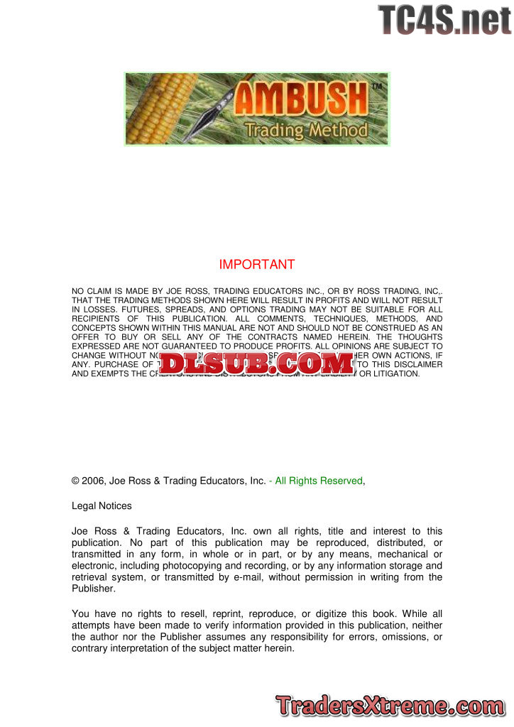 Joe Ross Ambush Trading Method On Wheat And Corn Usd 597 Usd 58