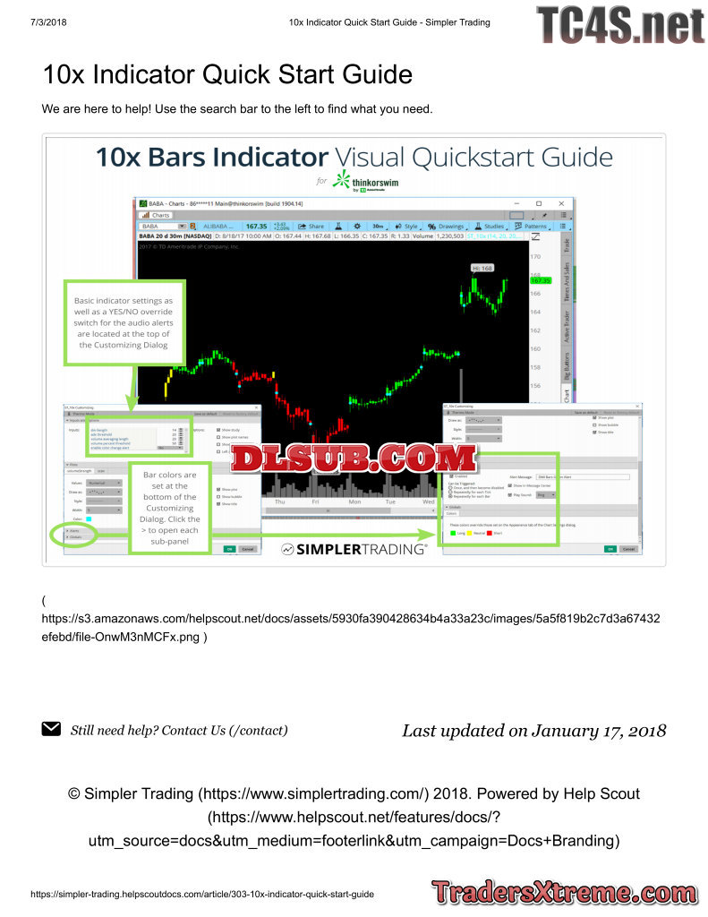 10x Indicator Quick Start Guide Simpler Trading - JPG Image File