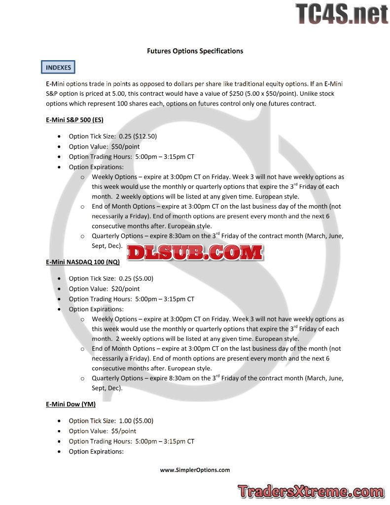 Futures And Options Spec Sheet - JPG Image File
