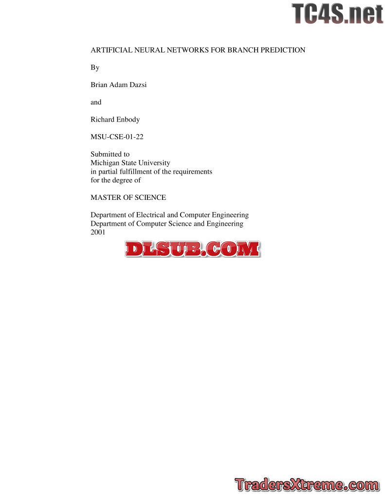 Brian Adam Dazsi Artificial Neural Networks For Brach Prediction
