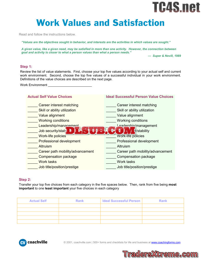 Determining And Prioritizing Your Work Values A Worksheet - JPG Image File