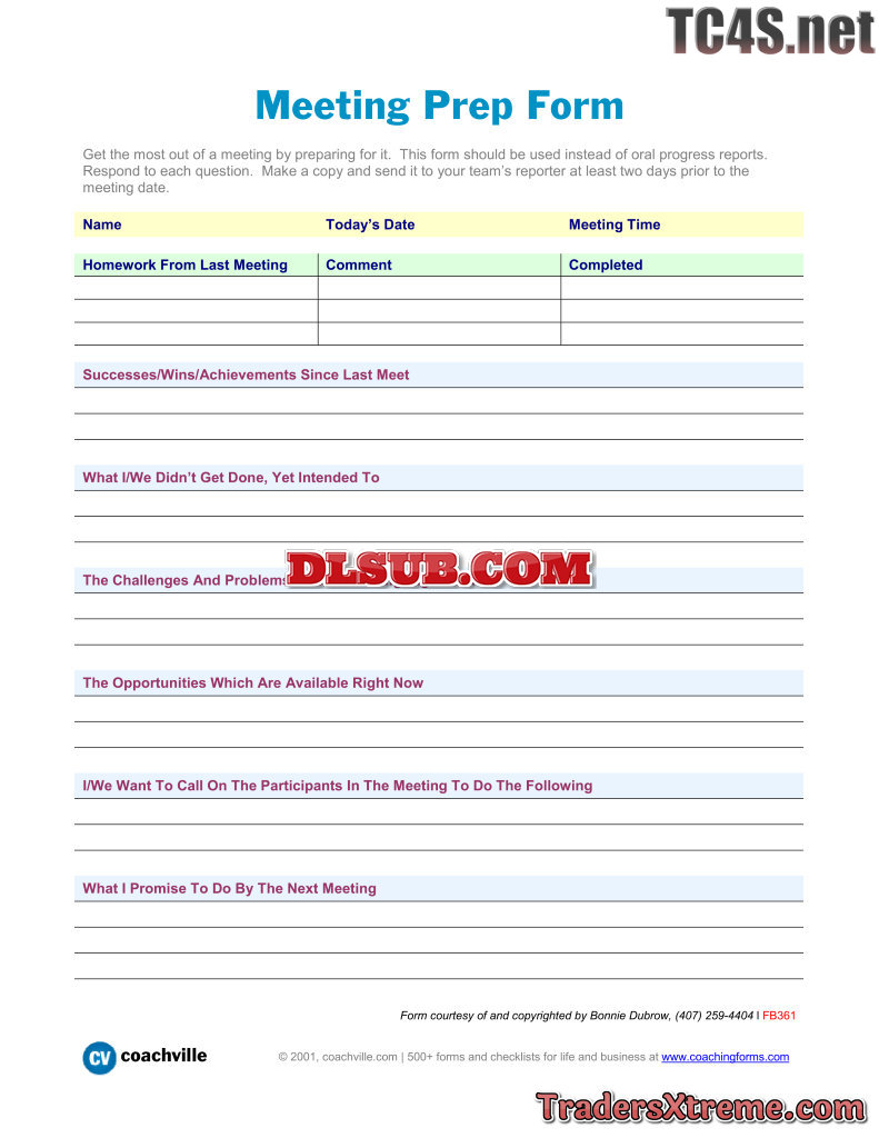 Meeting Prep Form Worksheet - JPG Image File