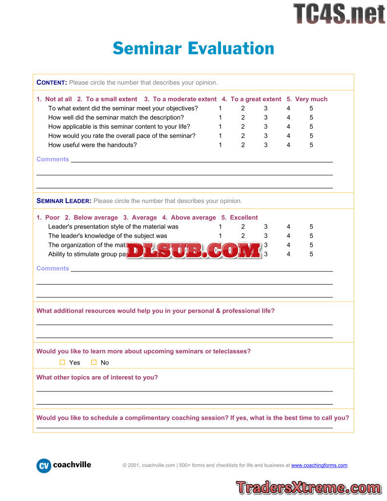 Seminar Evaluation Form For Attendees - JPG Image File