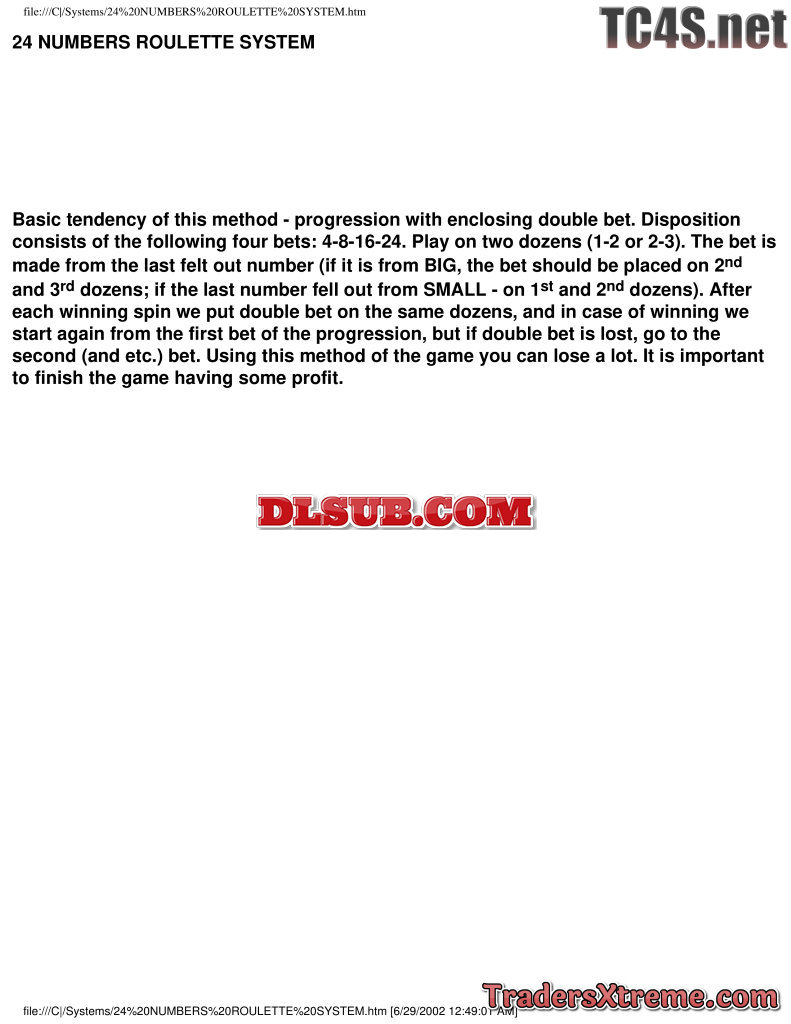 24 Number Roulette System
