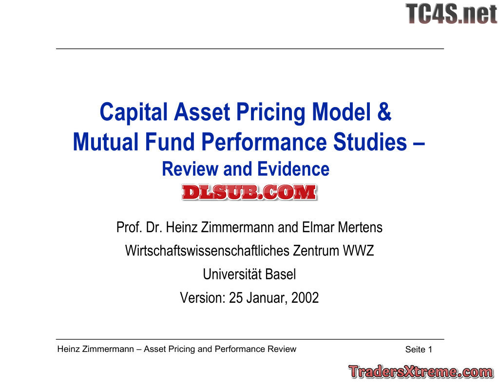 Heinz Zimmermann Capital Asset Pricing Model And Mutual Fund Perfomance Studies